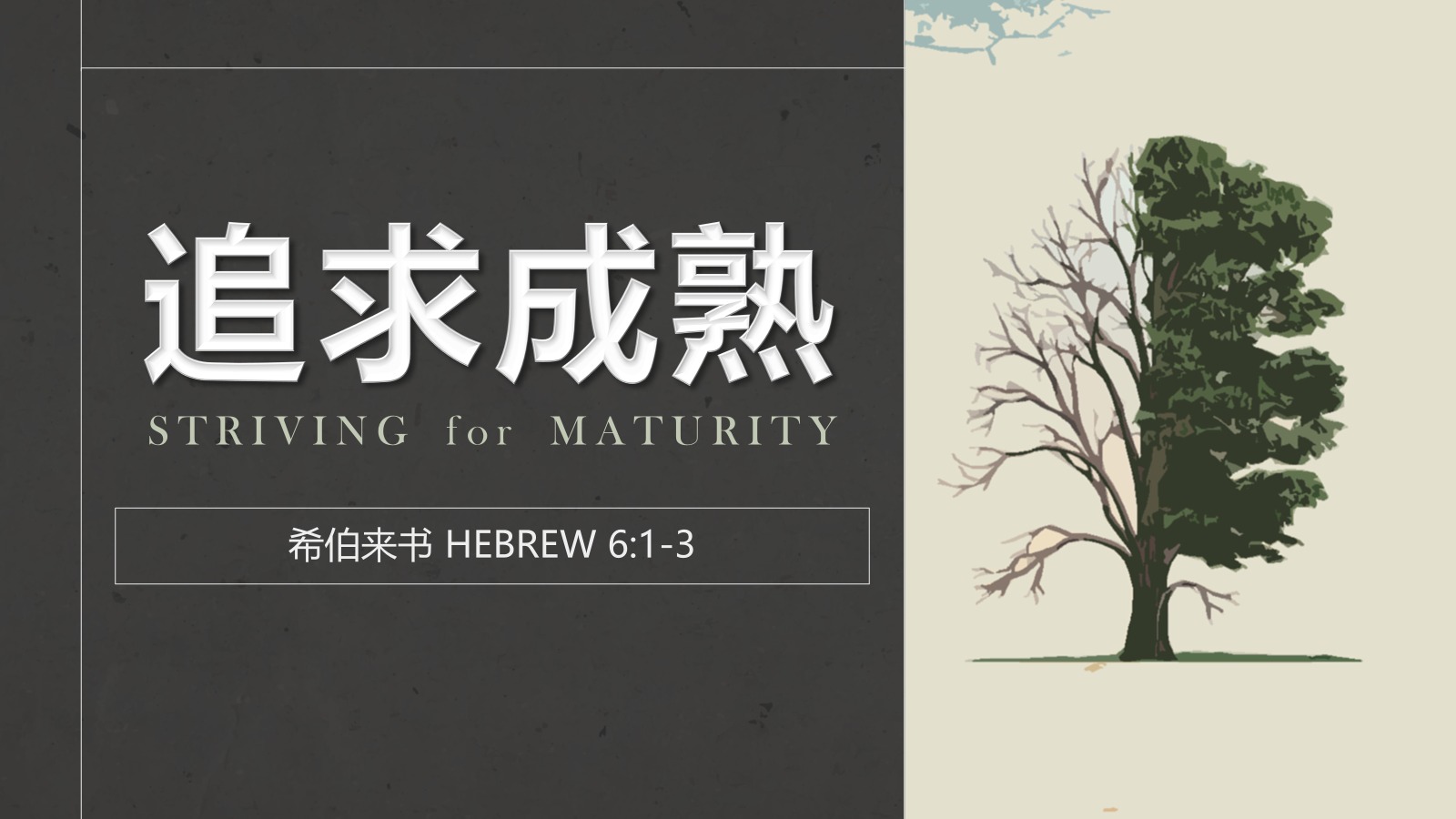 - 诚谢:刘泽丰牧师今早的证道,透过“希伯来书 6:1-3”来向我们宣讲主道“追求成熟”,愿主赐福刘牧师和所有谦卑聆听主道的人,使我们的生命在主的圣道中得滋润和喂养。
