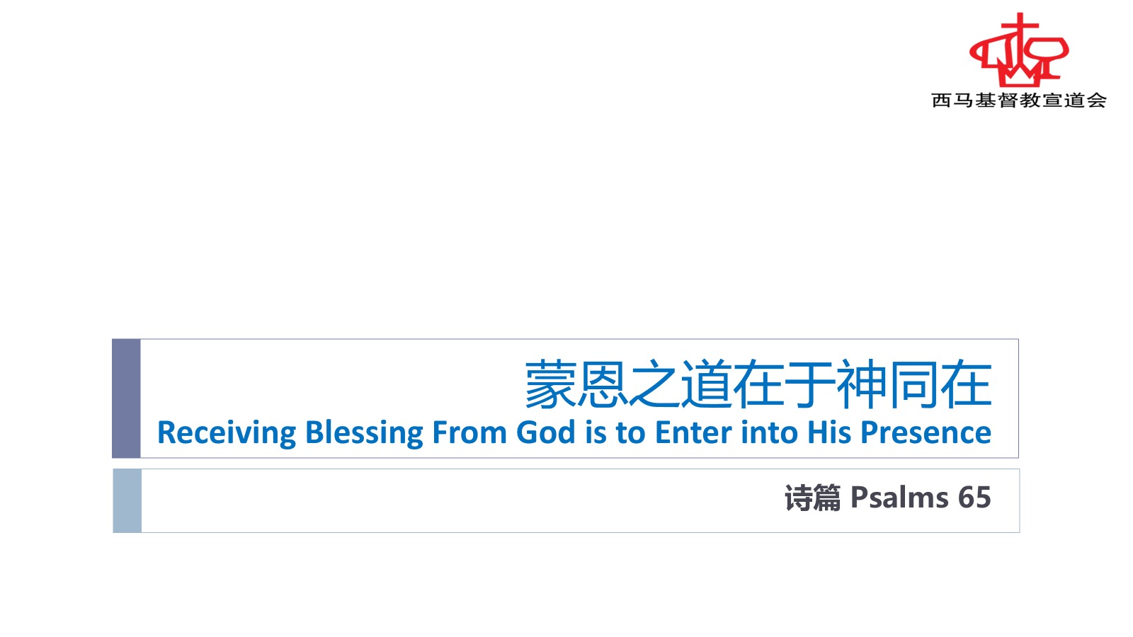 - 诚谢:陈世久牧师今早的证道,透过“诗篇 65”来向我们宣讲主道“蒙恩之道在于神同在”,愿主赐福陈牧师和所有谦卑聆听主道的人,使我们的生命在主的圣道中得滋润和喂养。