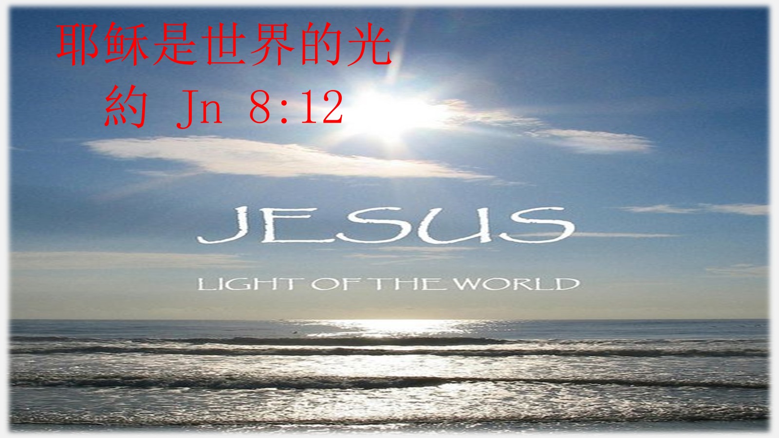 - 诚谢:陈亚惹传道今早的证道,透过“约翰福音 8:12”来向我们宣讲主道“耶稣是世界的光”,愿主赐福陈传道和所有谦卑聆听主道的人,使我们的生命在主的圣道中得滋润和喂养。